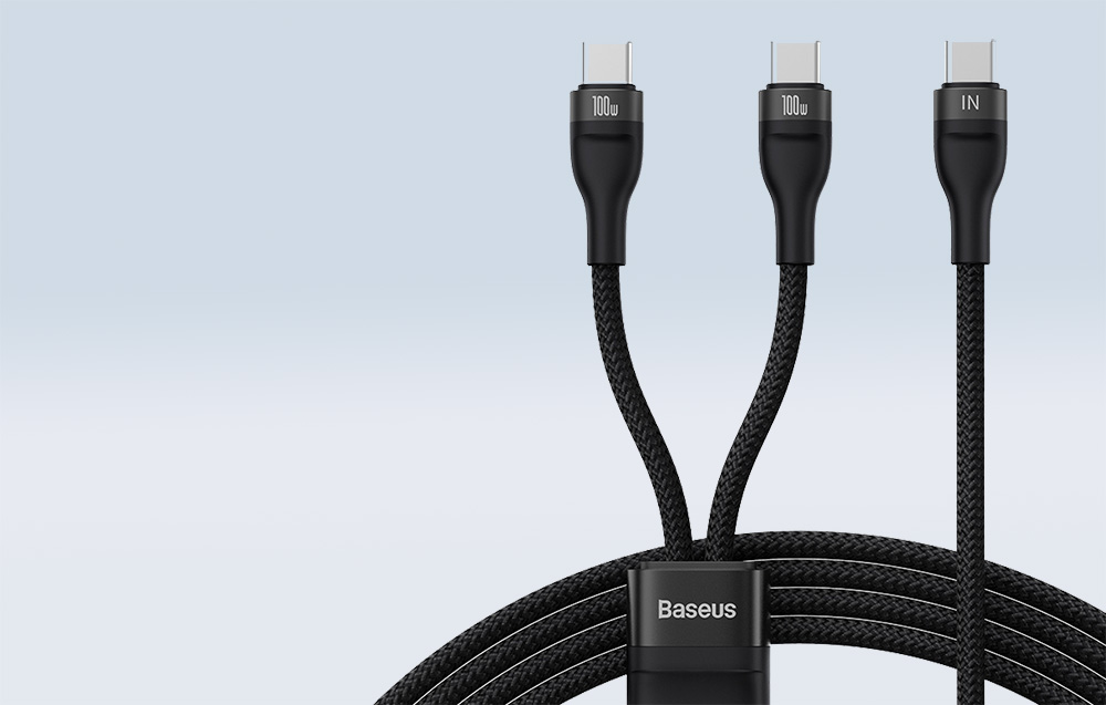 Baseus Flash -sarjan kaapelissa on 2 USB-C-liitintä, joiden avulla voit ladata 2 laitetta samanaikaisesti. Se on yhteensopiva monien suosittujen valmistajien laitteiden kanssa, kuten Huawei, Xiaomi, Samsung, Apple, Lenovo, Dell, HP ja Nintendo Switch -pelikonsolit.