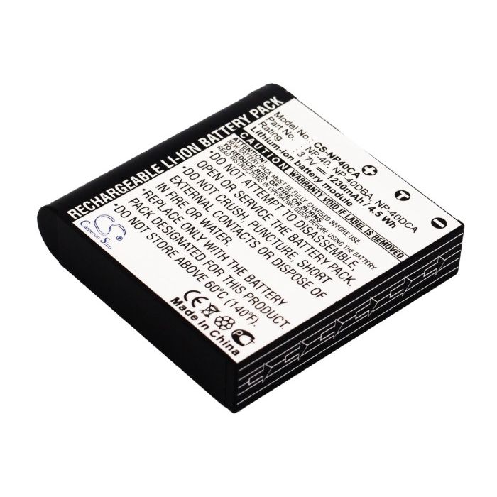Akku on yhteensopiva ainakin seuraavien Casio kameroiden kanssa: Exilim Zoom EX-Z600BE Exilim Zoom EX-Z1200BK Exilim Zoom EX-Z100BN Exilim Pro EX-P505 Exilim Zoom EX-Z100MR Exilim Pro EX-P700 Exilim Zoom EX-Z200RD Exilim EX-Z40 EX-Z1080GY EX-Z1080 Exilim Zoom EX-Z1200SR EX-Z1050PK Exilim Zoom EX-Z500 Exilim Zoom EX-Z300PK Exilim Zoom EX-Z600BK Exilim Zoom EX-Z300 Exilim Zoom EX-Z1000 Exilim Zoom EX-Z700GY Exilim Zoom EX-Z600 Exilim Zoom EX-Z100 Exilim Zoom EX-Z100SR Exilim Zoom EX-Z57 Exilim Zoom EX-Z100BE Exilim Zoom EX-Z55 Exilim Zoom EX-Z200BK Exilim EX-Z30 EX-Z1080BK EX-Z1050BE EX-Z1050SR EXILIM EX-Z400 EX-Z1050 Exilim Zoom EX-Z300BK Exilim Zoom EX-Z850 Exilim Zoom EX-Z600SR Exilim Pro EX-P600 Exilim Zoom EX-Z200 Exilim Zoom EX-Z100PK Exilim Zoom EX-Z750 Exilim Zoom EX-Z200SR Exilim Zoom EX-Z50 EX-Z1080PK EX-Z1080BE EX-Z1050BK Exilim Zoom EX-Z1200 EX-FC100 Exilim Zoom EX-Z700 Exilim Zoom EX-Z300SR Exilim Zoom EX-Z1000BK Exilim Zoom EX-Z700SR Exilim Zoom EX-Z450 Exilim Zoom EX-Z450GD Exilim Zoom EX-FC150BK Exilim Zoom EX-FC150RD Exilim Zoom EX-FC100BK Exilim Zoom EX-FC100WETämä akku korvaa ainakin seuraavat Casio alkuperäisakut:NP-40 NP-40DBA NP-40DCA