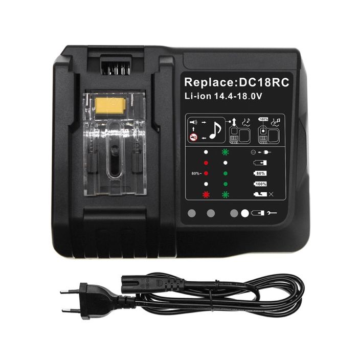 Laturi yleisimmille Makita työkalu ja porakone akuille joiden jännite on 14,4 - 18 volttia. Lataa Li-ion akkuja