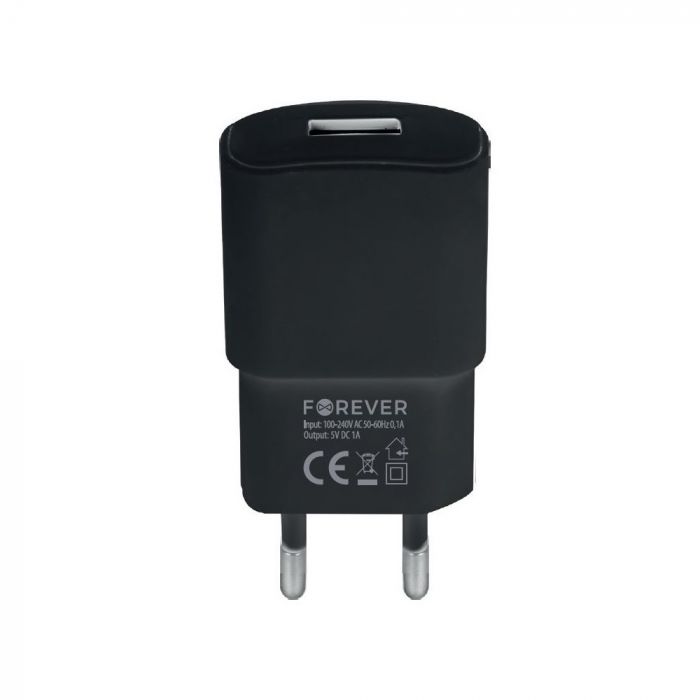 Forever TC-01 Verkkovirtalaturi USB 1A, musta