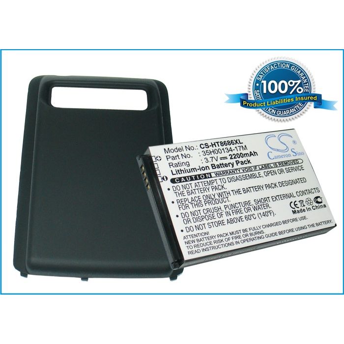 You're reviewing: HTC 7 Trophy, Spark, T8686 Extended With Back Cover yhteensopiva akku - 2200 mAh