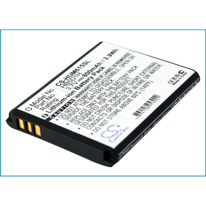 Huawei yhteensopiva puhelimen akku. Sopii ainakin seuraaviin Huawei malleihin: M615 Pillar M615 M635 Pinnacle 2Tämä akku korvaa ainakin seuraavat Huawei alkuperäisakut:HB5D1H