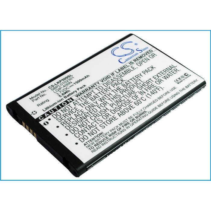 LG yhteensopiva puhelimen akku. Sopii ainakin seuraaviin LG malleihin: P509 Optimus S LS670 MS690 Optimus M Optimus T TP509 Optimus U US670 Optimus P500 Vortex VX660 VX660 Phoenix P505 Thrive P506 Optimus C Optimus S Optimus V LW690 VM670Tämä akku korvaa ainakin seuraavat LG alkuperäisakut:LGIP-400N SBPL0102301