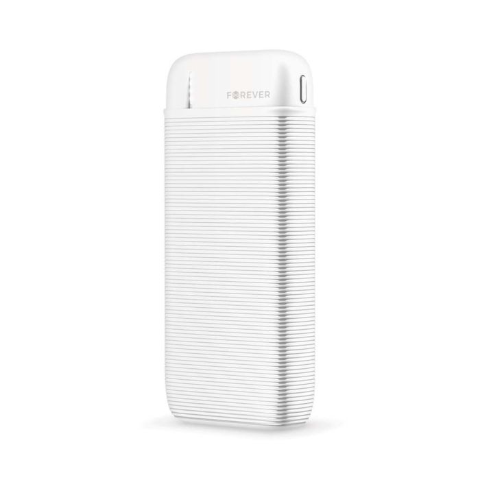 Foreverin valmistama powerbank vara-akku puhelinten ja tablettien lataamiseen 10000 mAh kapasiteetilla. Ehdoton mukana reissussa kompaktin kokonsa ja miellytävän koteloinnin vuoksi. Valkoinen kotelointi pinnoitteella joka pysyy hyvin kädessä.