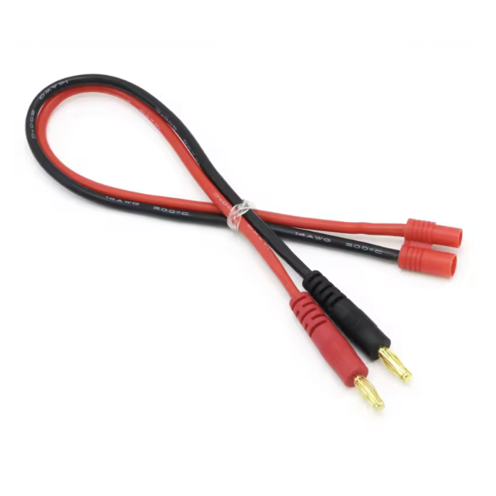 Latauskaapeli jossa toisessa päässä plugit ja toisessa HXT3.5 liitin.