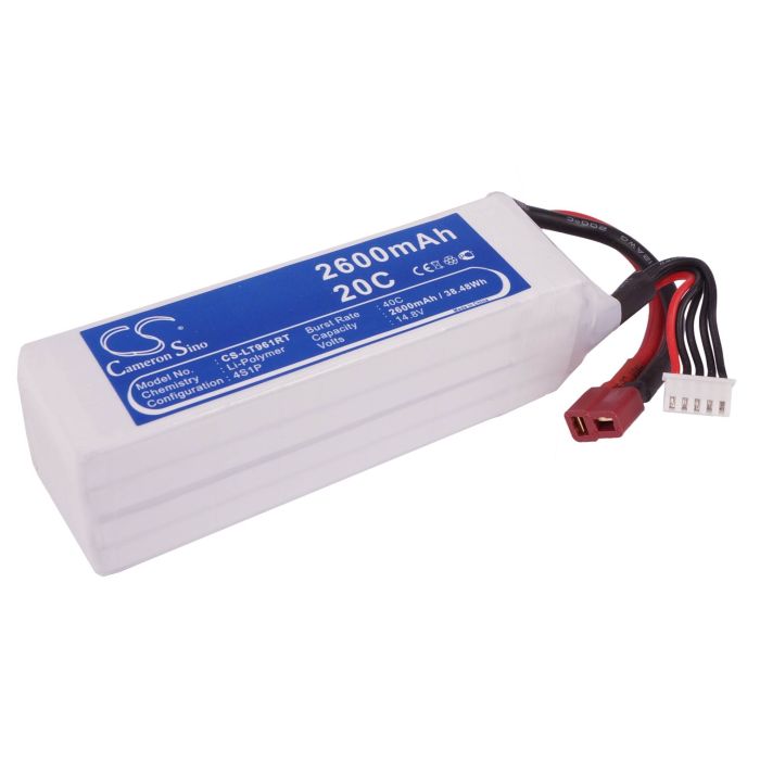 2600 mAh, 14.8V Li-Po akku erityisesti lennokeihin, helikoptereihin ja veneisiin. 4 kpl kennoja Tasausliitin: JST-XHR-5P Latausliitin: T-Plug Jatkuva virrannantoky 25CHetkellinen 50 Tämä akku sopii radio-ohjattaviin autoihin, veneisiin, helikoptereihin sekä lennokkeihin ja muihin projekteihin joissa tarvitaan suurta virranantokykyä. Muista paloturvallisuus tehokkaiden Li-Po akkujen kanssa! Suosittelemme latauspussia.