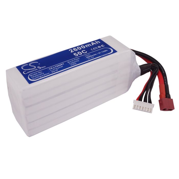 2600 mAh, 22.2V Li-Po akku erityisesti lennokeihin, helikoptereihin ja veneisiin. 6 kpl kennoja Tasausliitin: JST-XHR-7P Latausliitin: T-Plug Jatkuva virrannantoky 40CHetkellinen 80 Tämä akku sopii radio-ohjattaviin autoihin, veneisiin, helikoptereihin sekä lennokkeihin ja muihin projekteihin joissa tarvitaan suurta virranantokykyä. Muista paloturvallisuus tehokkaiden Li-Po akkujen kanssa! Suosittelemme latauspussia.