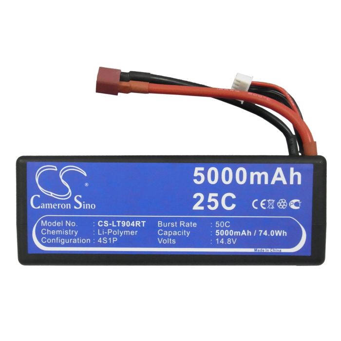 Kovakuorinen 5000 mAh, 14.8V Li-Po akku erityisesti RC-autoihin kestävämmän kotelon vuoksi. 4 kpl kennoja Tasausliitin: JST-XHR-5P AWG22 Latausliitin: T-Plug Jatkuva virrannantoky 25CHetkellinen 50Tämä akku sopii radio-ohjattaviin autoihin, veneisiin, helikoptereihin sekä lennokkeihin ja muihin projekteihin joissa tarvitaan suurta virranantokykyä. Muista paloturvallisuus tehokkaiden Li-Po akkujen kanssa! Suosittelemme latauspussia.