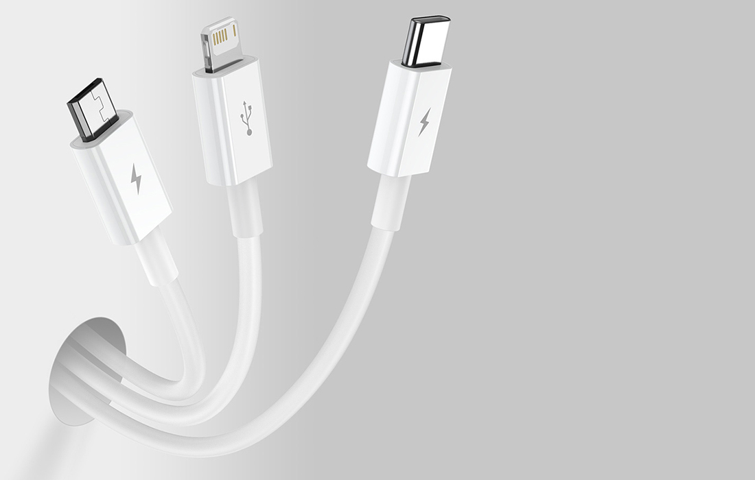 Tätä käytännöllistä kaapelia voi käyttää juuri niin kuin haluat. Jopa 3 erilaista pistoketta sopii useisiin laitteisiin, joita voit myös käyttää samanaikaisesti. Lightning-liittimen avulla voit ladata iPhonesi. Ja sen avulla voit siirtää tiedostoja nopeasti. USB-C-liitin on yhteensopiva muun muassa Xiaomin, Samsungin ja Huawein älypuhelimien kanssa. Mikro-USB-liitin sopii vanhoihin Android-puhelimiin ja pieniin kodin laitteisiin, kuten esimerkiksi lamppuihin tai pöytätuulettimeen.