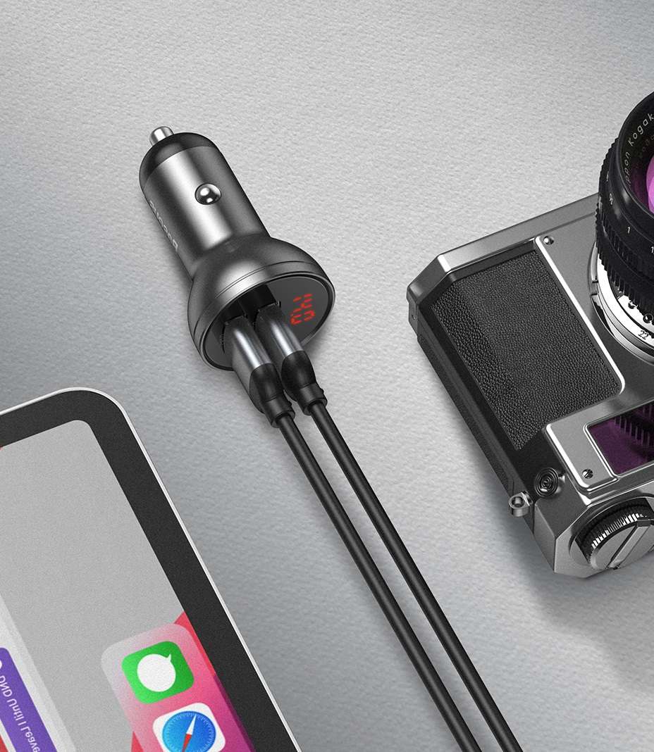 Kompakti autolaturi, jonka avulla voit ladata kahta laitetta samanaikaisesti murehtimatta hitaasta latauksesta. Se tarjoaa nopean latauksen 4,8 A:lla. Valmistettu korkealaatuisesta alumiinista, se kestää naarmuja ja pieniä mekaanisia vaurioita.