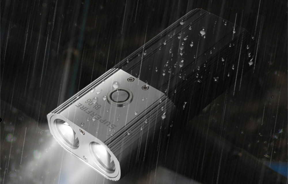 Toinen Superfire ajovalon etu on sen kompakti muotoilu. BL06:n mitat ovat 112 x 51 x 30 mm, joten se ei vie paljon tilaa. Lisäksi se on valmistettu korkealaatuisesta alumiinista, joten se kestää jopa 1 metrin pudotuksia. Lisäksi IP64-vesitiiviystaso mahdollistaa sen käytön myös sateessa.